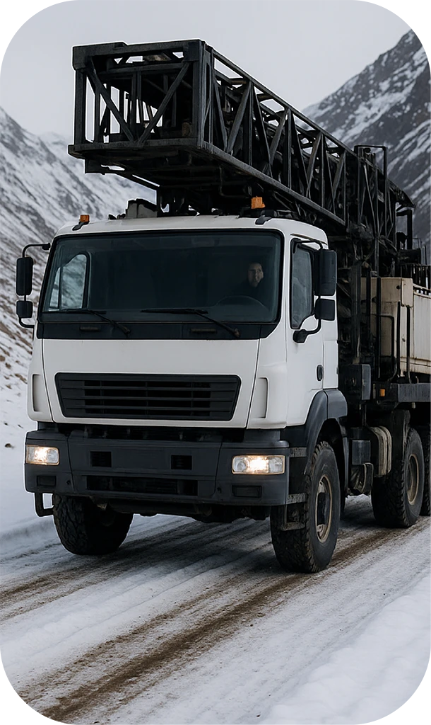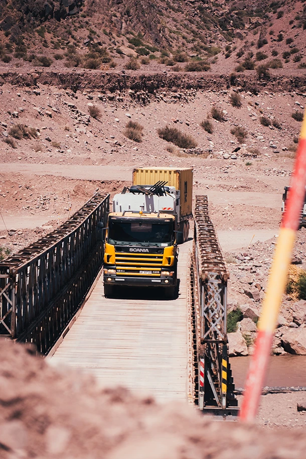 Movimiento eficiente de contenedores, módulos habitacionales, aditivos, barras de perforación e insumos mineros. Flota moderna y planificación detallada para rutas de alta montaña y traslados nacionales / internacionales.